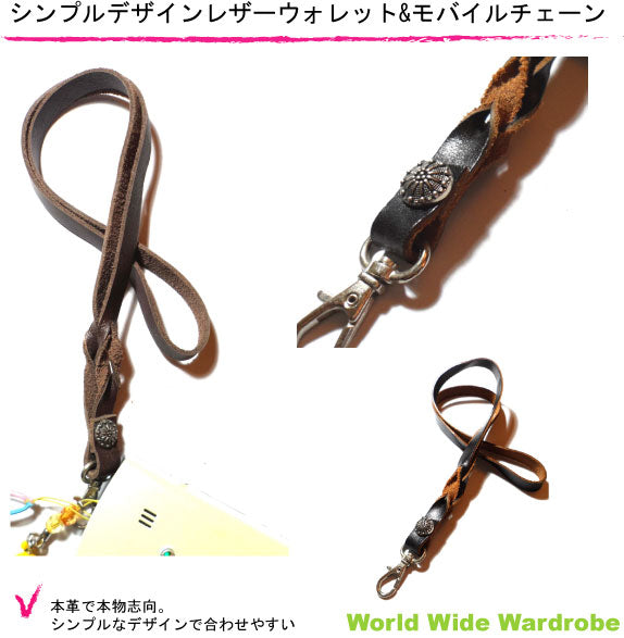 クーポン スタッズ付き編込み本革レザーウォレット&モバイルネックストラップ